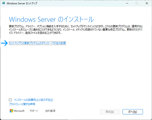 セットアップの更新プログラムのダウンロード方法の更新 をクリック