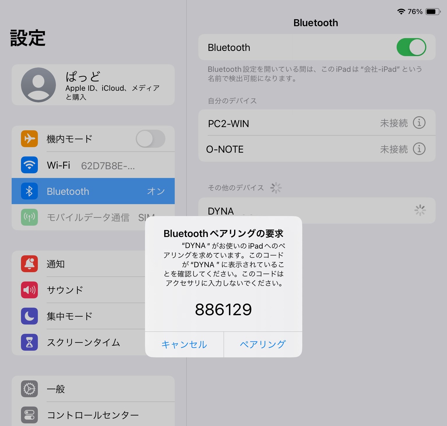 PCとスマートフォンをBluetoothでペアリング